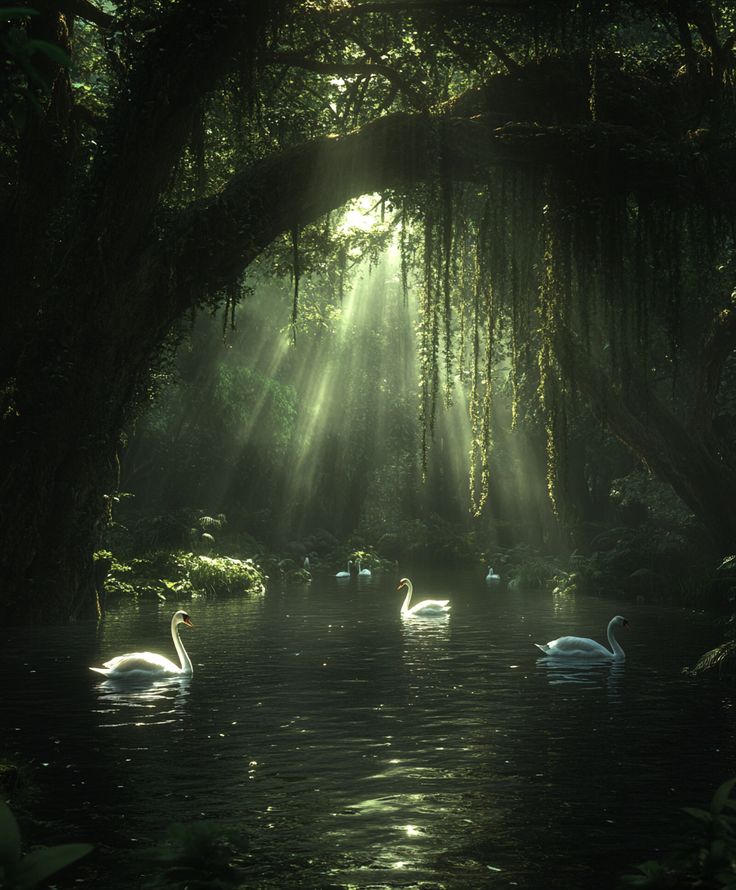 Step beneath towering silver-barked trees where the forest itself breathes. The wind carries voices of old spirits, and those who listen closely may uncover secrets long forgotten… or be led astray forever.
